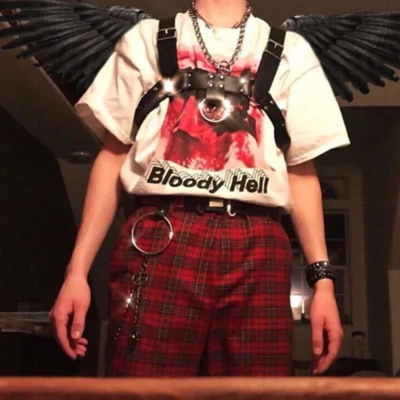 Introducing our Rivets Belt Shoulder Strap, a versatile accessory that adds an edgy and techwear-inspired touch to your outfit. This adjustable buckles belt accessory is designed to elevate your streetwear ensemble and provide a unique and eye-catching look.