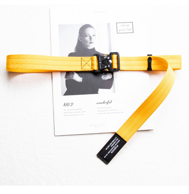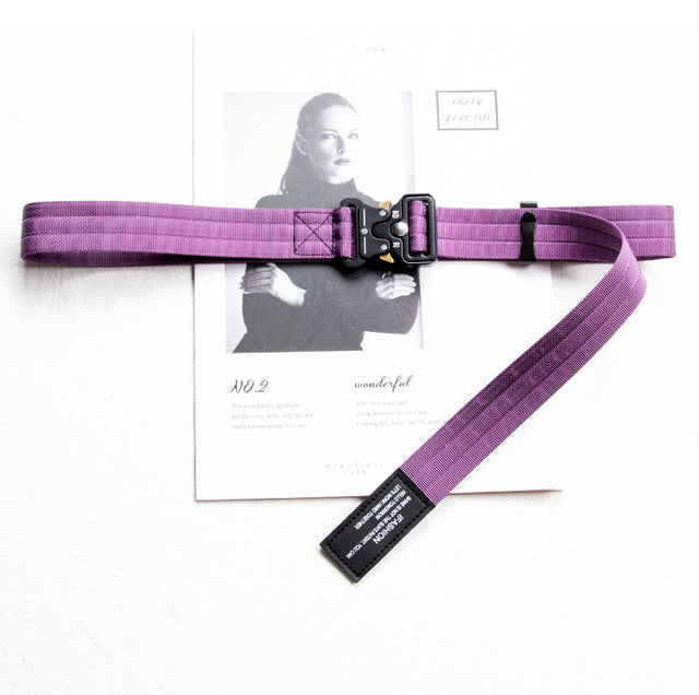 Introducing our Techwear Buckle Belt, a fashionable and functional accessory that adds an edgy touch to your streetwear ensemble. This belt is designed with the modern techwear and hip-hop fashion in mind, featuring a 3cm width and a functional fabric strap for versatility and style.